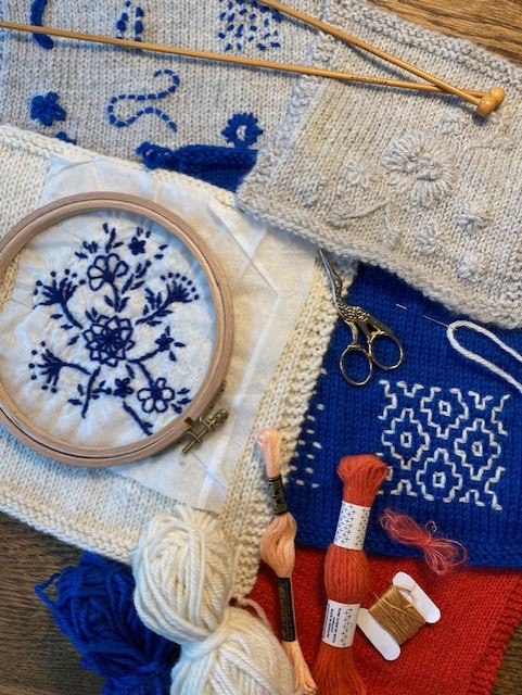 Jeg præsenterer et oplæg om forskellige spændende teknikker som egner sig til broderi på strik: frihåndsbroderi og forskellige sting, hvor man broderer efter maskerne.