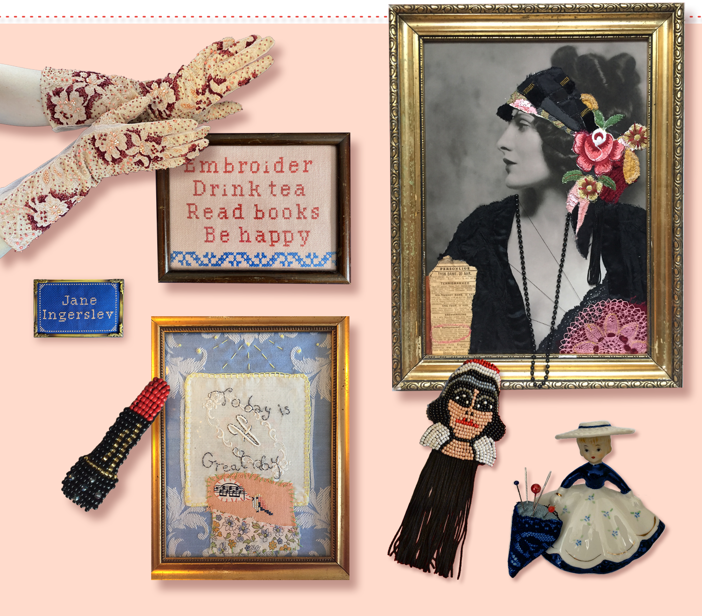 Jeg er tilknyttet den legendariske brodeributik “Broderi Moderne” i Århus C, hvor jeg har vagter og afholder broderiworkshops fra forår 2026.